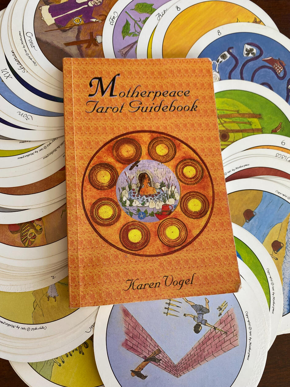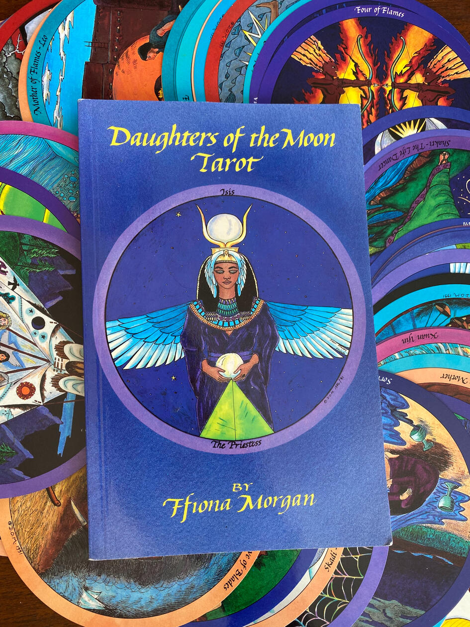 These decks were created in the Womanist & feminist tradition and reject notions of linear time. Cards are divided into major and minor arcana but are circular in order to represent the cyclical nature of life and being.